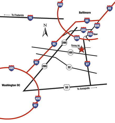 From South of BWI Airport: Take I-97 north to Dorsey road (exit 15B), go west on Dorsey, left on Stewart, right on Zachary, left on Wilson, left on Glenbrook, it will be on the right.
